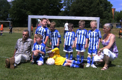Auf dieser Seite möchten wir die jüngsten Fußballer in unserem Verein vorstellen. Die Bambini haben noch keinen geregelten Spielbetrieb. Es werden nur Turniere gespielt, wo das Ergebnis der Spiele zweitrangig ist. Am Ende gibt es für jeden eine Urkunde und einen kleinen Preis, Pokale oder Süßigkeiten. Die Bambinis werden seit einigen Jahren schon von Ulla und Berni Weirauch trainiert. |
