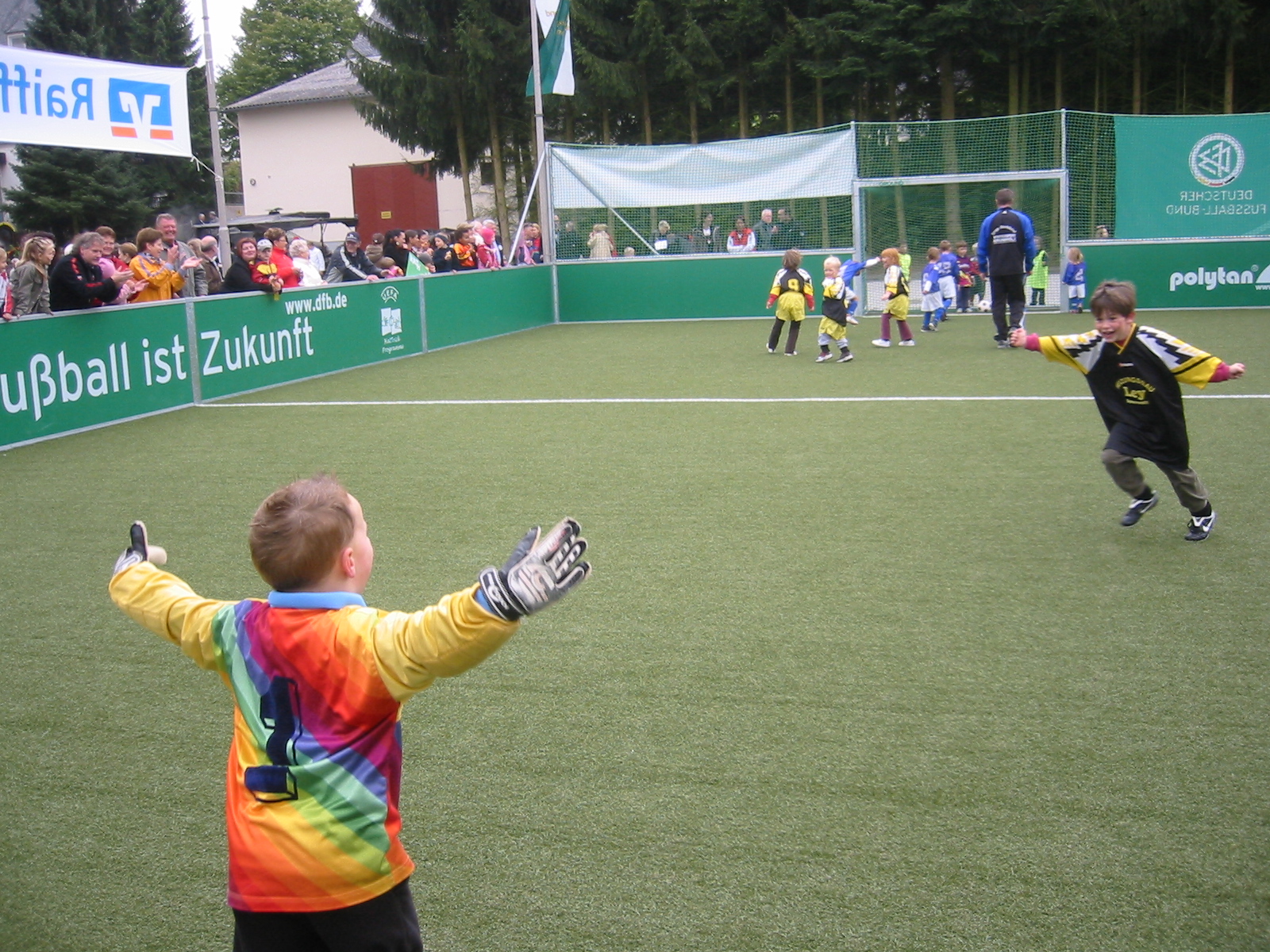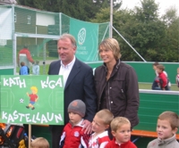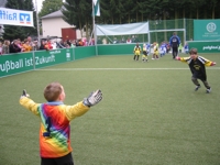 Das Warten hat sich gelohnt. Es gab eine sehr schöne Feier zur Einweihung unseres Spielfeldes. Die Kinder und die Erzieherinnen haben ein tolles Rahmenprogramm gestaltet, welches durch die Fußballturniere untermalt wurde. Natürlich war es auch etwas besonderes, echte Weltmeister und den DFB-Präsidenten zu treffen. Die folgenden Fotos sollen einen kleinen Eindruck von der Atmosphäre vermitteln. |