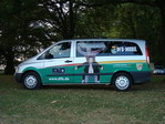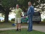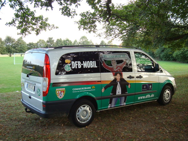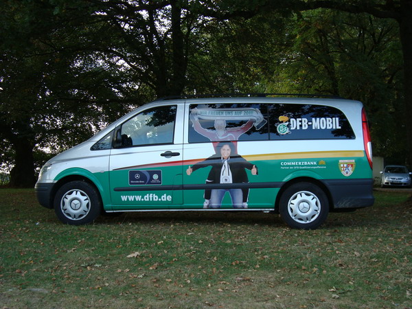 Bühne. Das DFB-Mobil mit den beiden Trainern Burkhardt Lau und Udo Blaeser war